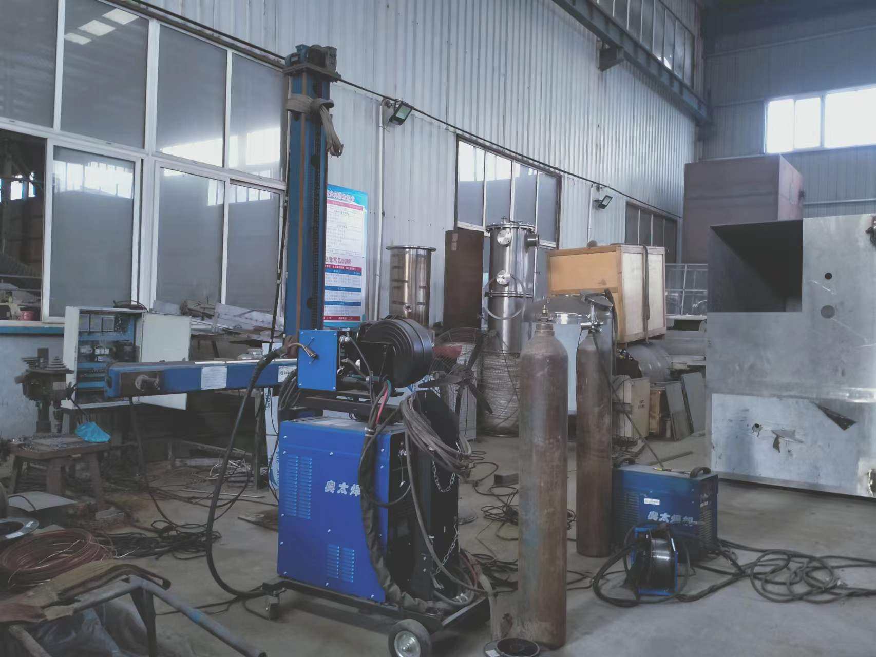焊缝、纵缝自动焊机、等离子切割机、卷板机、封头抛光机、滚筒抛光机等多种现代化智能生产设备。