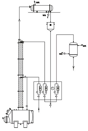 精回收,以利于降低生产成本,提高经济效益,本装置可将30-50度的稀酒精蒸馏到90-95度,成品酒精要求高,可加大回流比,但相应成